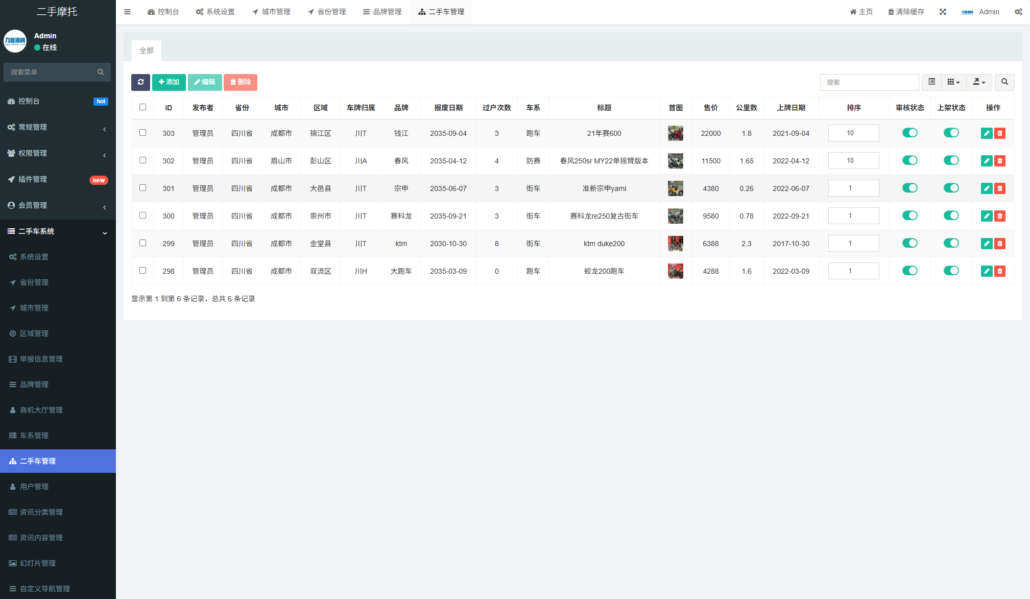 基于FastAdmin框架开发专为摩托车经销商或个人卖家设计,方便展示和销售二手摩托车。