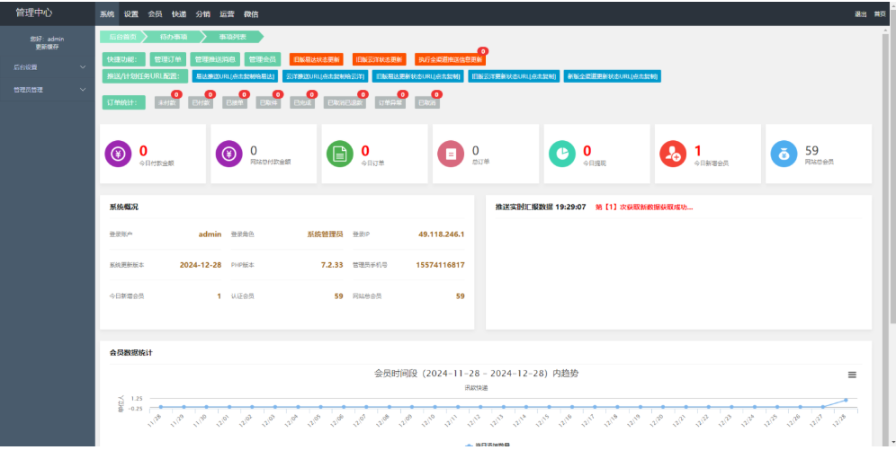 快递寄件小程序源码 寄快递软件 快递小程序,主要就是帮别人发快递,在原本的用户与快递之间,增加中间代理,用户在小程序下单,我们把用户需要发的快递聚集到一起,团购更优惠的价格,赚取其中一个差价!当订单量较大的时候,就有与各快递平台合作的价值,能拿到更优惠的价格!小程序还包含了完善的广告管理、会员和分销功能!支持官易达/云洋第三方平台接口接口!搭建说明:php7.2 mysql5.6·上传源码到网站根目录解压数据库连接修改:/application/database.php运行目录/,关闭防跨站,伪静态thinkphp导入数据库文件申请ssl,强制https后台/admin admin 123456设置->基础设置->站点设置:修改站点网站域名设置->小程序配置->小程序参数配置:修改小程序的信息小程序打包:·/manifest.json中重新获取appid,源码视图中修改小程序appid·/api.js中修改域名地址·/pages.json 285行修改appid需要正式微信小程序账号,在微信公众平台小程序后台中添加对应的插件(物流服务查询组件);否则进不去前台!物流插件安装
